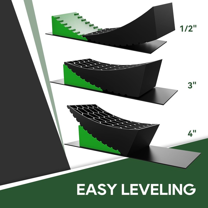 RVGUARD Camper Levelers, Up to 35,000 lbs RV Camper Leveling Kit with Curved Levelers and Wheel Chocks, Offers Gradual Height Changes Instead of Block Height Increments, Comes with Anti-Slip Mats