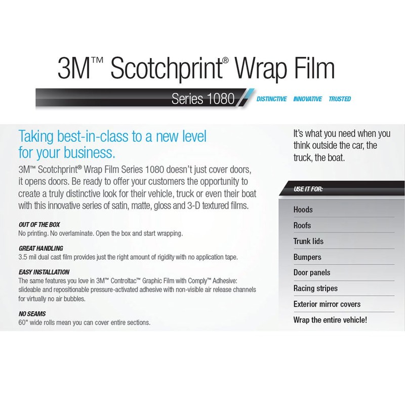 - Genuine 3M 1080 Series Film with Rvinyl Quick Guide installation flyer