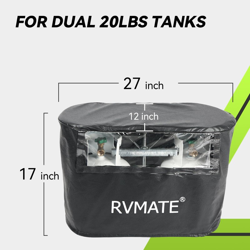 - 🚩【FUNCTION】The RVMATE RV Propane Tank Cover offers reliable protection for your RV's propane tanks, shielding them from potential damage caused by debris, elements.