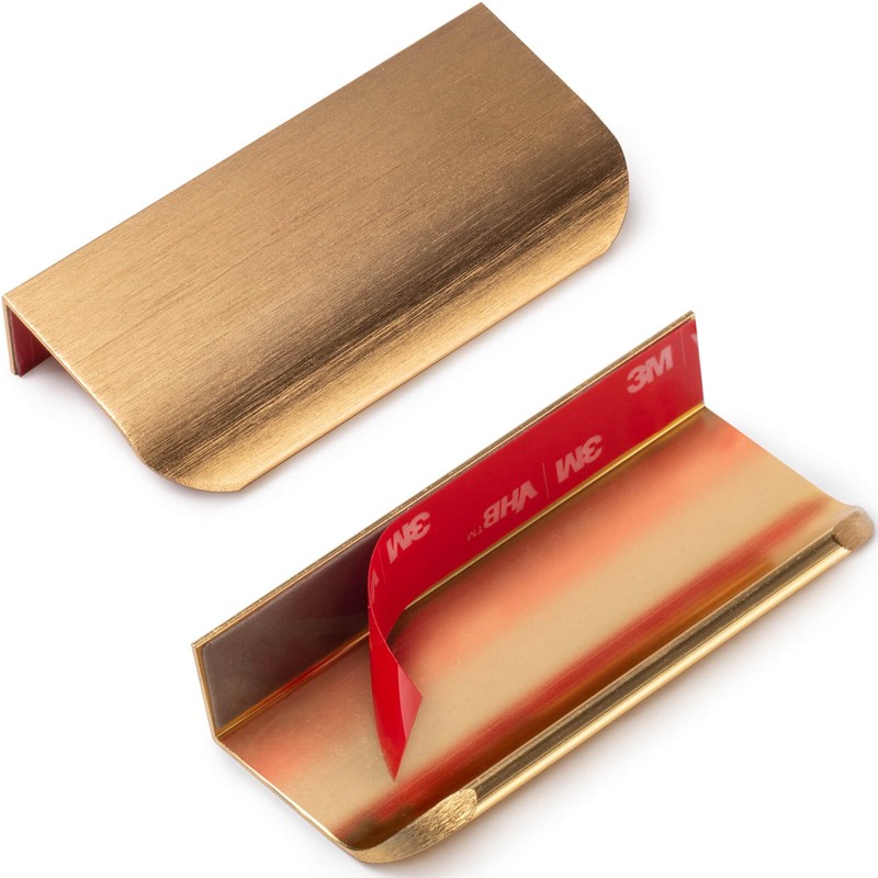 RVPEKUPE 5-Pack Adhesive Edge Finger Pulls for Cabinets No Drill Hidden Drawer Pulls Flat Stick On Cabinet Handles (Brushed Gold, 3.15" Length)