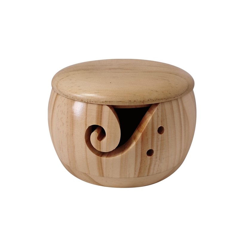 RVXlRDN Wooden Yarn Bowl 5.91x3.15inch, Handmade Knitting Yarn Storage Bowl with Lid and Holes, Crochet Bowl Holder for DIY Embroidery Crocheting Accessories(Pine)