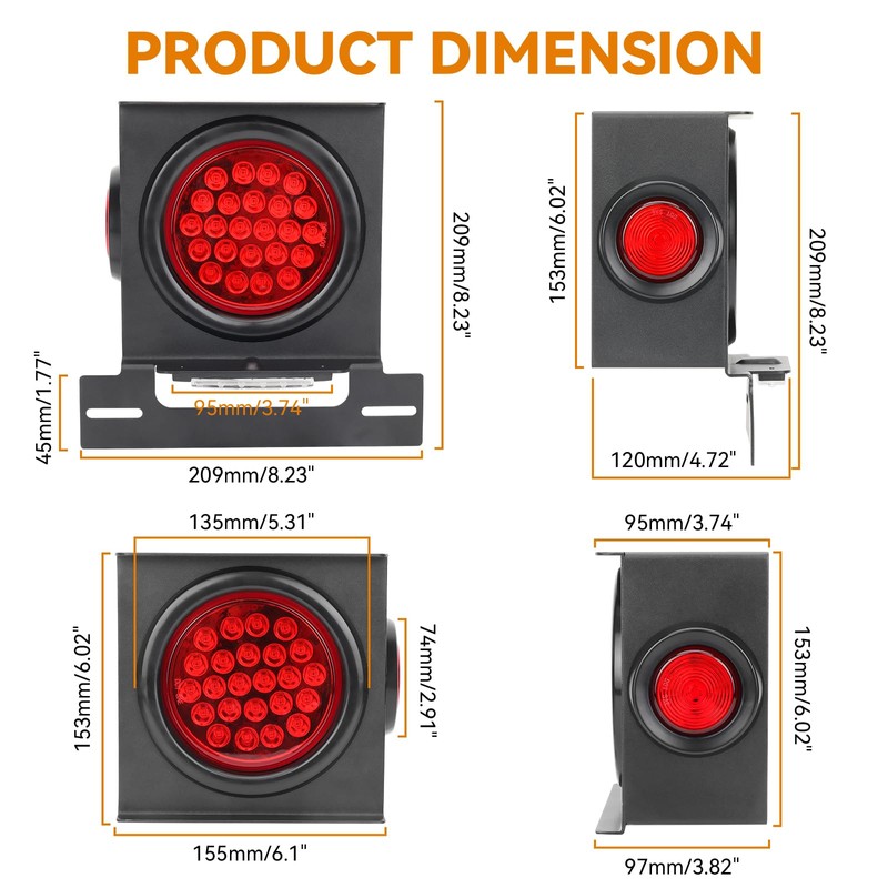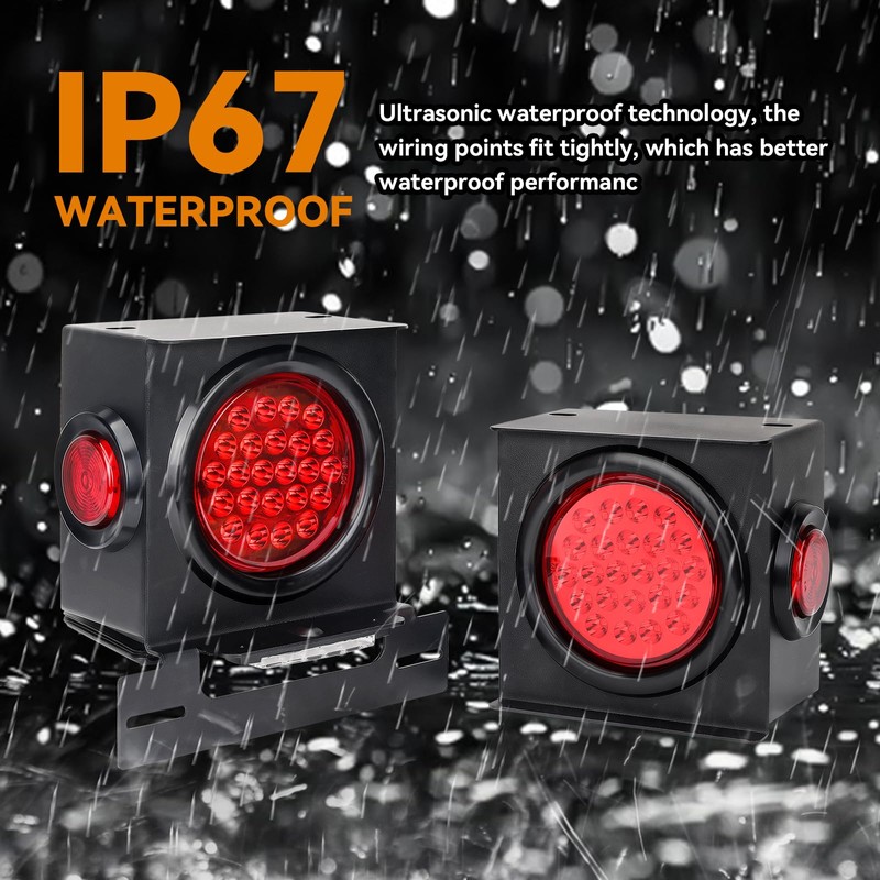 - High Brightness: The round 4-inch rubber ring round taillight on the front has 24pcs high-brightness 2835 led beads, the round 2-inch rubber ring round marking light on the side has 9pcs high-brightness 3030 led beads, and 6pcs high-brightness license plate lighting led beads. Each lamp bead has a lens or reflective cup to increase brightness without being harsh.