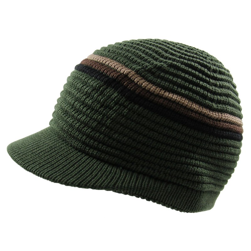 RW Knitted Cotton Rasta Skully Beanie Visor (Olive/Khaki)