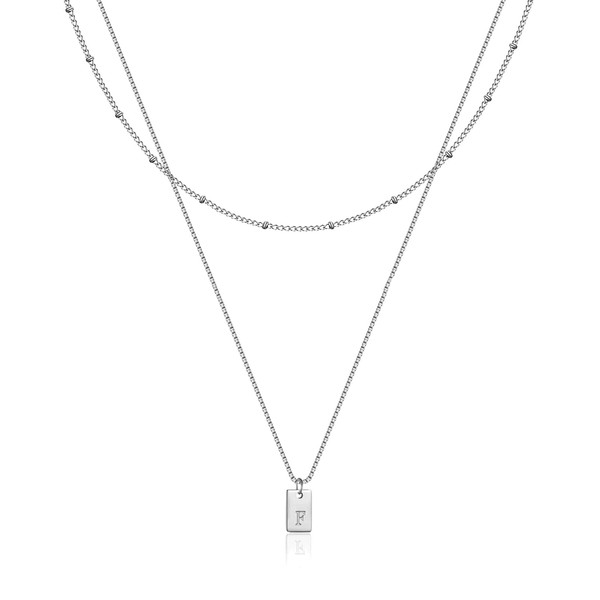 RWQIAN Layering Chain with Letters A-Z Pendant Women's Letter Chain Gold/Silver Initials Letter Necklace 18 Inches + 2 Inches Jewellery Letters Gifts for Women, Stainless Steel