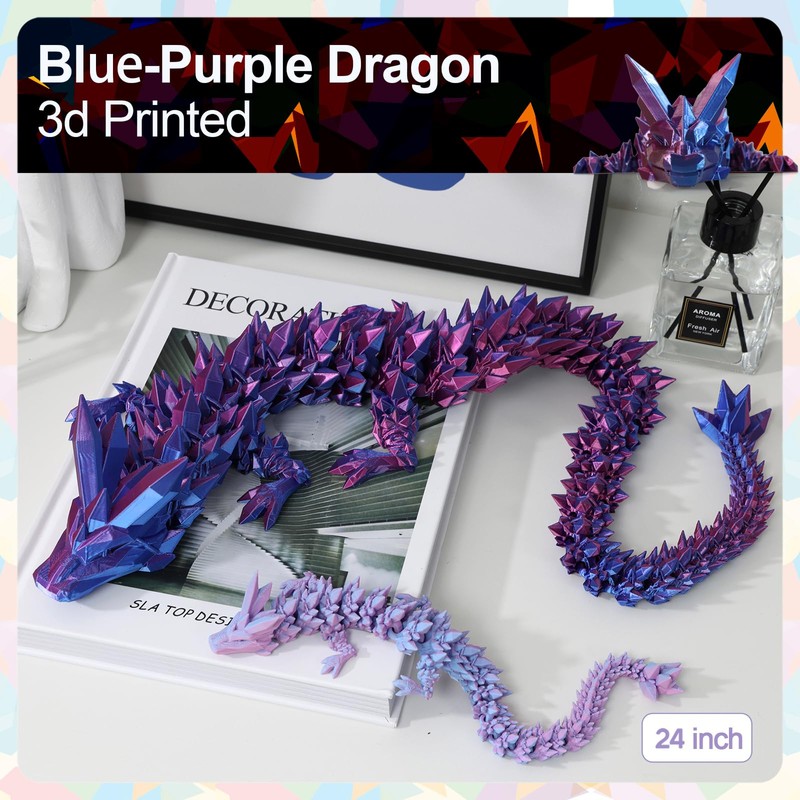 RWSEFK 24 in 3D Printed Dragon, 24inch Dragon,3D Dragon Toy,Large Dragon Present,Ariculated Crystal Dragon(Blue Purple, 24inch)