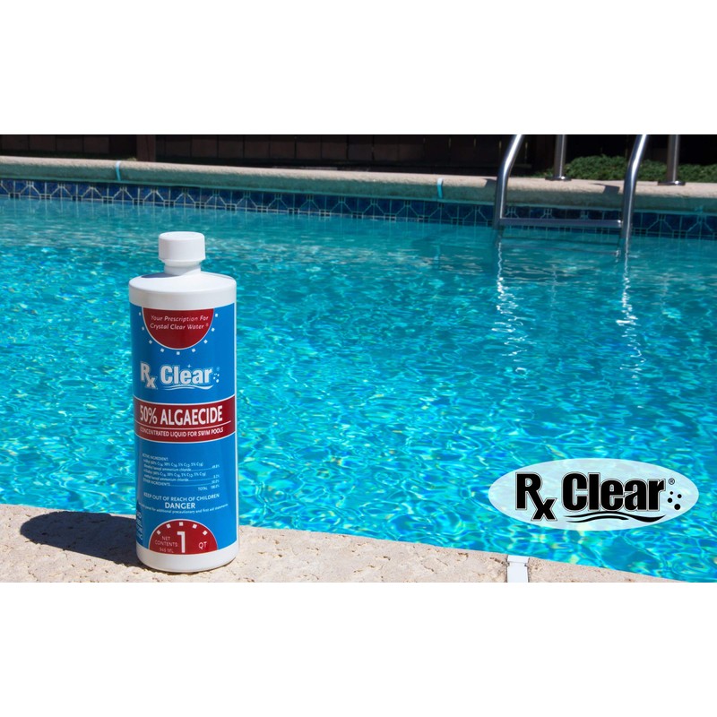 - COAT THE WALL - Algaecide coats the walls of the swimming pool, keeping algae in suspension. Surfactant splits open algae cells, helping to destroy them. The Rx Clear algaecide coats the pool wall to control the problem, keeping your swimming pool crystal clear.