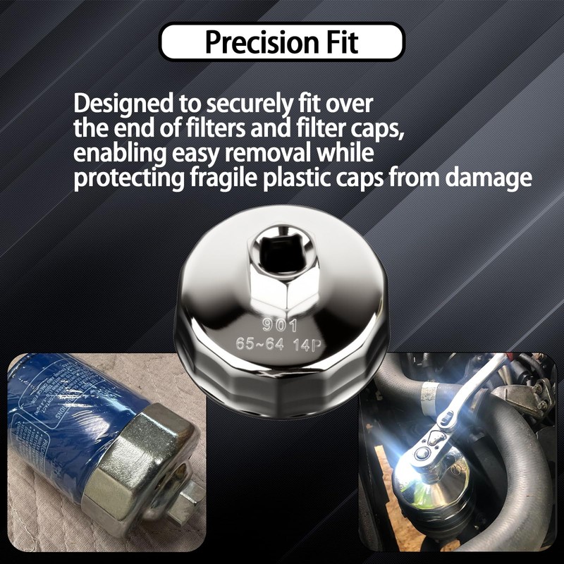64-65mm Oil Filter Wrench, 14 Flute Wrench & 1/2Inch Square Drive Flute Oil Filter Removal Tool, Compatible with Wix 57356, 15400-PLM-A02 Oil Filter