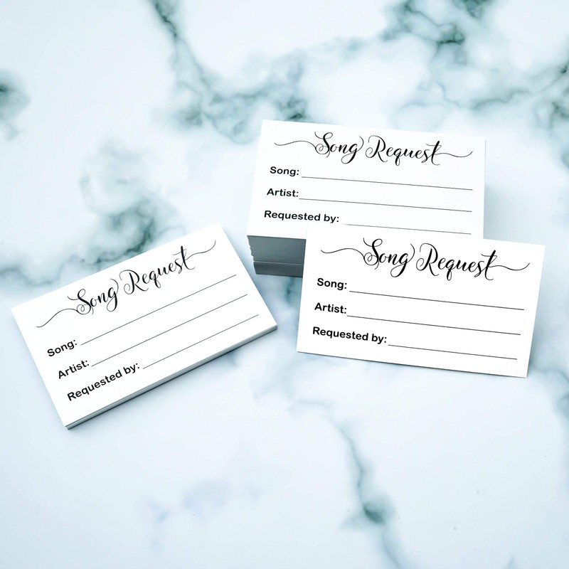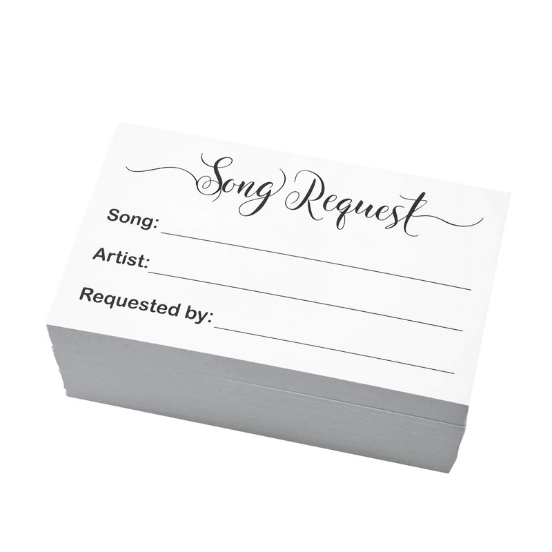 - Song Request cards allow party guests to request their favorite song be played at your event.