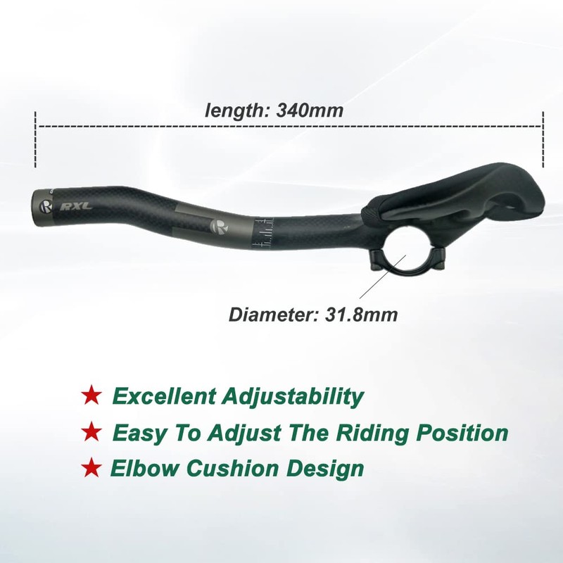 - High-quality carbon fibre: triathlon attachment road bike made of T700 carbon fibre, which is super light and suitable for 31.8 mm brackets, length: 340 mm. Weight: approx. 320 g; carbon fibre is comparable to an aluminium alloy: lighter in weight. Much more beautiful in appearance. Brighter in color. Stronger in pressure resistance. Anti-shock. It has sufficient elasticity and improves the class of your bike in minutes.