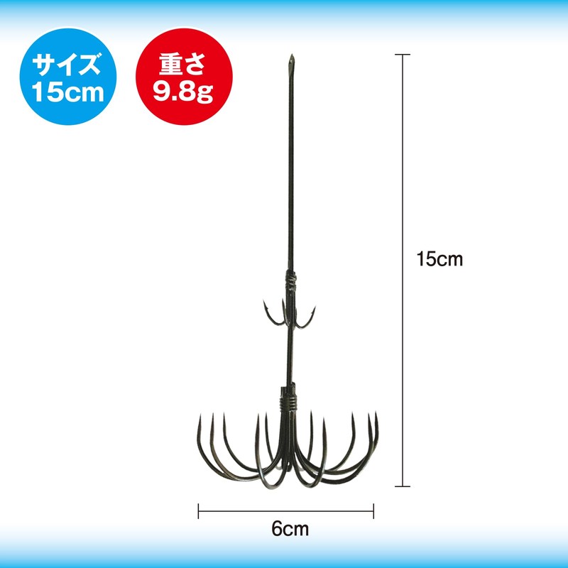 - A set of 5 squid hooks that can easily be caught by beginners. An essential tool for squid fishing. (Product Specifications) Total Length: Approx. 5.9 inches (15 cm), Lower Needle Width: Approx. 2.4 inches (6 cm), Weight: 0.3 oz (9.8 g)