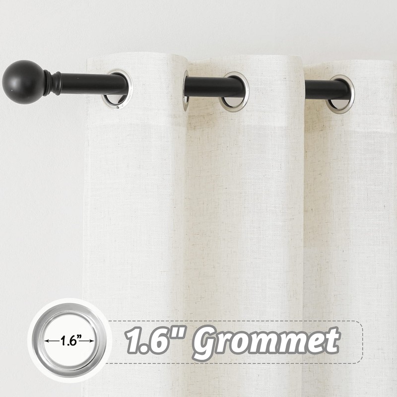 - WELL MADE - Made of high-density fabric with line weave textile. 1.6-inch inner-diameter grommets that fit most of the curtain rod; 2" bottom hem enable sheers hanging more vertical.