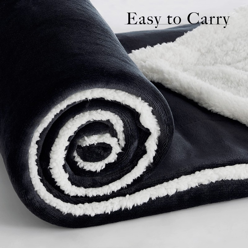 RYB HOME Sherpa Fleece Throw Blankets, Super Soft Fluffy Reversible Blue Blanket Throw for Traveling Camping Napping, W 50" x L60, Navy Blue