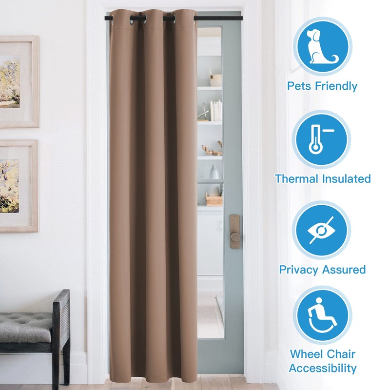 RYB HOME Thermal Insulated Door Curtains, Room Darkening Privacy Doorway Drapeies Ideal Temporary Door for Doorway Closet , Width 42 x Length 80 inches, Mocha, Set of 1