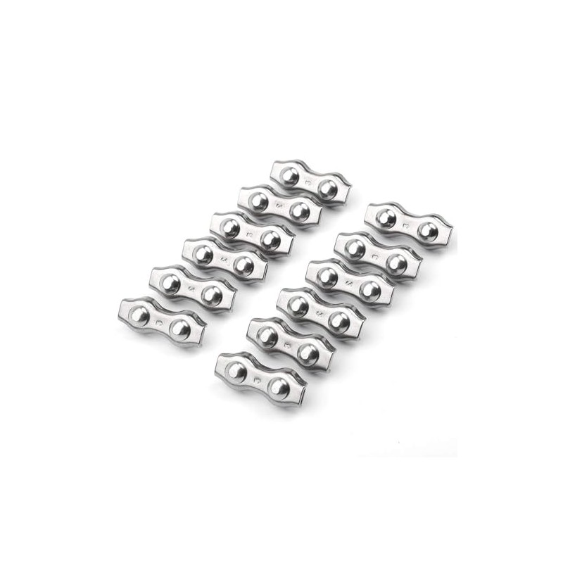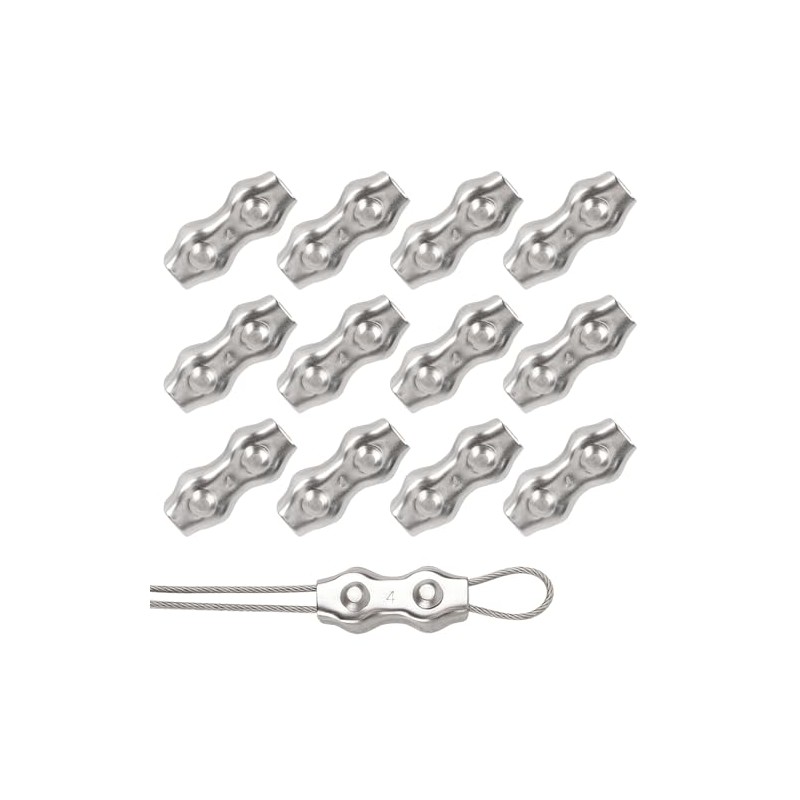Rybtd Rybtd Wire Rope Grips 12 PCS Duplex Wire Clamp 4mm 304 Stainless Steel M4 Duplex Clamp,Wire Rope Clamp for Wire Rope 4mm Steel Rope Clothesline Tensioner Awning Fixed Temporary Fences Winch Ropes
