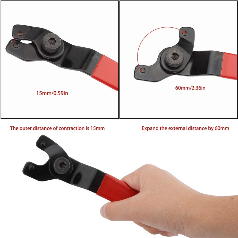 • Maximum adjustable distance of angle grinder adjustable wrench of the lock nut angle grinder is 8-48mm, and the adjustable angle design can adapt to a variety of angle grinders to the greatest extent. There is a hole at the bottom of the angle grinder spanner, which can be hung up, convenient for storage and not easy to lose.