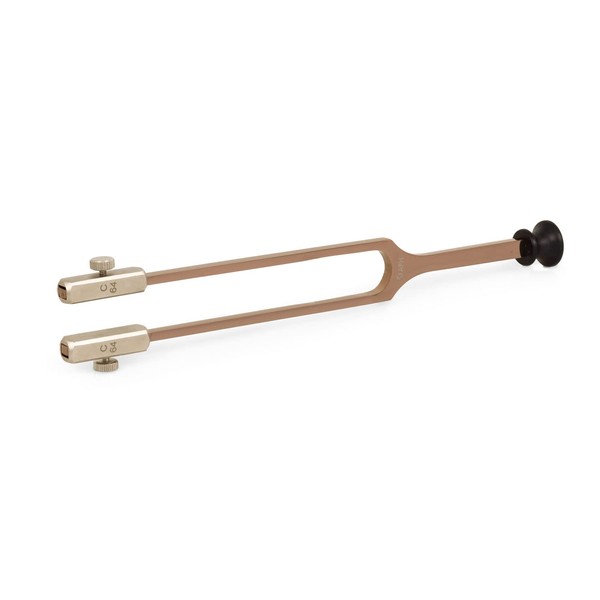 - The tuning fork has removable dampers with 1/8 scale divisions. With the screwed dampers, the fork swings at 64 Hz. Without damper, the instrument swings at 128 Hz. The dampers can be loosened or tightened with the help of the thumb screws.