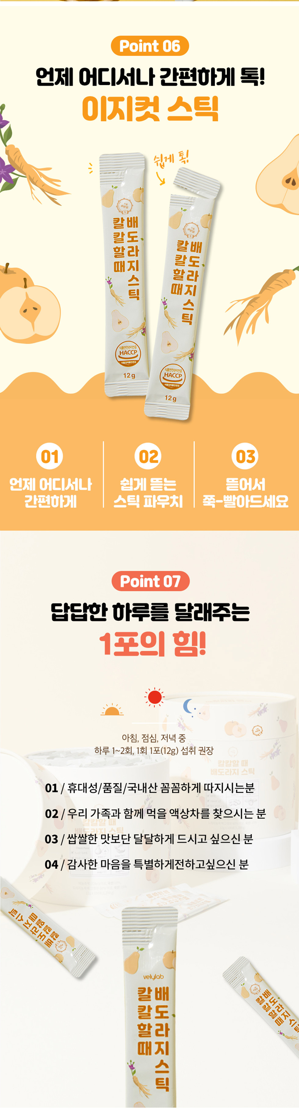 - Product Name and Model: Calcal Hal Tae Baedorajis Stick