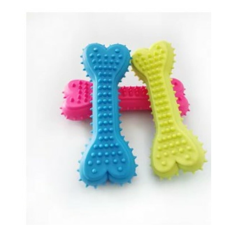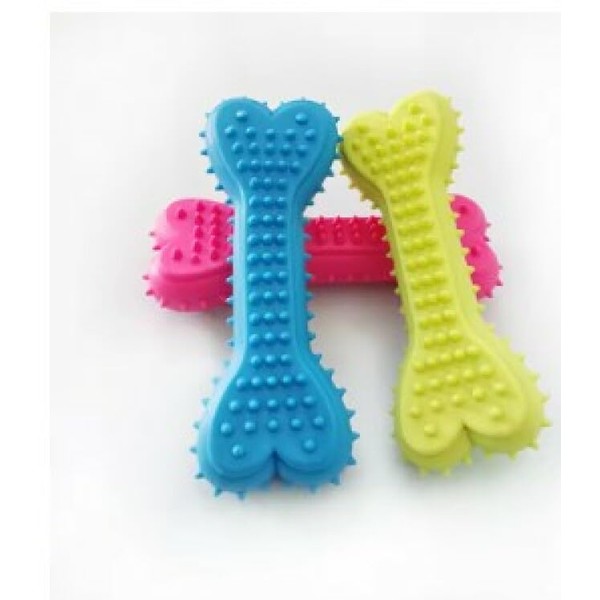 RYND Dog Chew Toy, Textured Bone Shape, Blue/Pink/Lime Green (Lime Green)