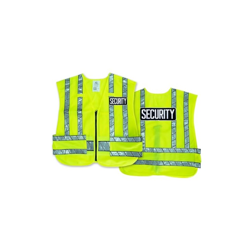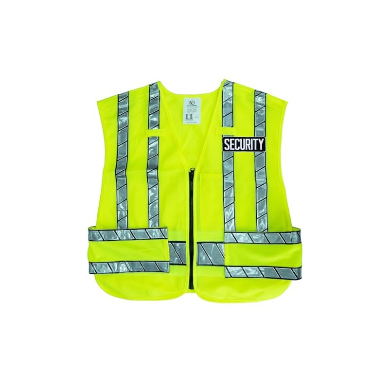RYNO GEAR High Visibility Zipper Front Safety Vest With Reflective Strips-Security Patch (US, Alpha, 4X-Large, 5X-Large, Regular, Regular, Embroidered Patch)