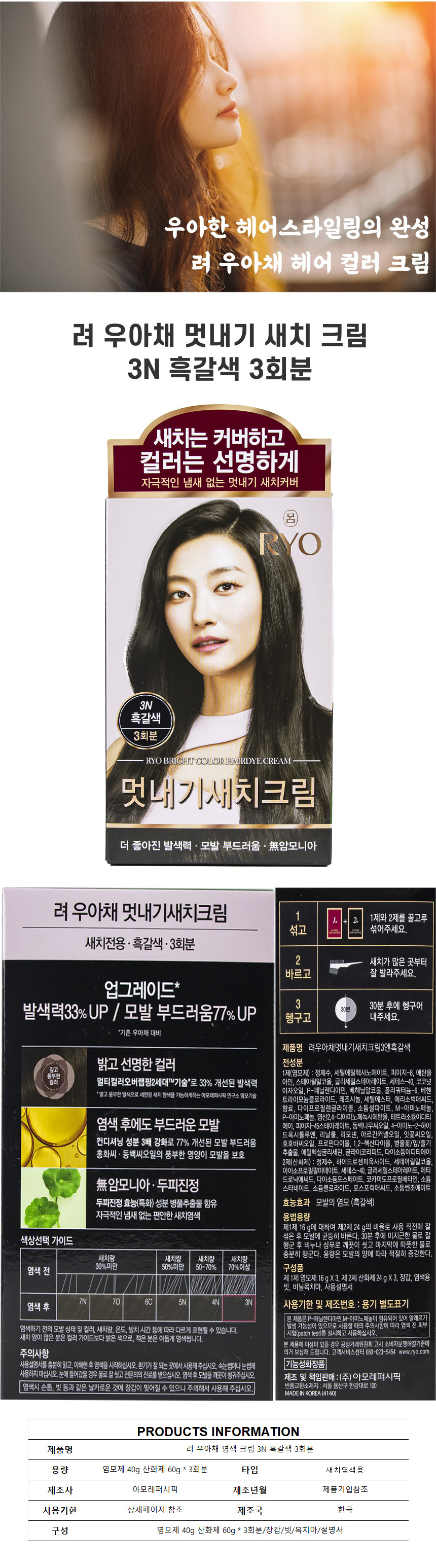 려 우아채 염색 크림 3N 흑갈색 3회분