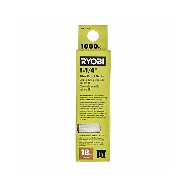 Ryobi introduces the 1,000pc 1-1/4in 18GA Brad Nails which are compatible with the RYOBI ONE+ 18 Volt AirStrike 18-Gauge Brad Nailer (P320). These nails are perfect for indoor applications and feature a galvanized finish for rust resistance, steel construction for durabilty and longer holding power, and a smooth shank design that prevents nail jams.