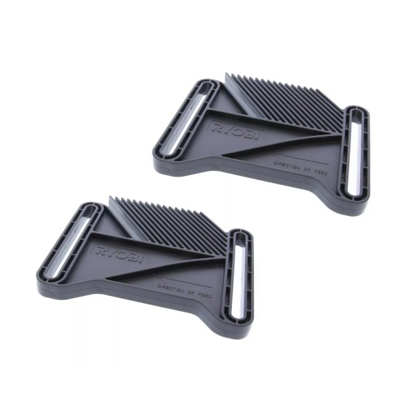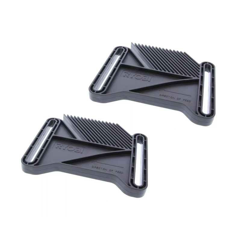 Pack of 2 new OEM Ryobi featherboards #089220105030, replaces part numbers 90228530003 and 9002800009. Used with Ryobi router table models A25RT02, A25RT03, A25RT03G.