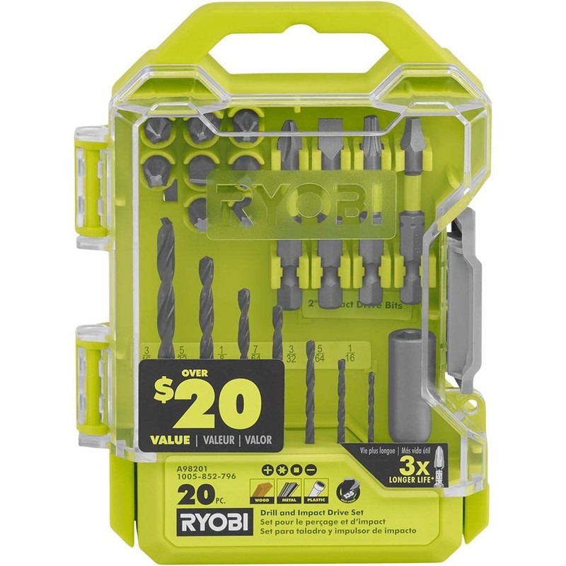 RYOBI Introduces the Black Oxide Drill and Drive Kit (20-Piece). This 20-Piece Drill and Drive kit is a great starter kit for all your projects containing wood, metal, and plastic materials. The Black Oxide bits are constructed out of high-speed steel with a black oxide finish to offer superior durability. Another key detail of these bits, is the 135° split point that prevents your bit from walking and ensures drilling on contact. This kit features bits containing a TORSION ZONE that is engineered to absorb the high torque and demand that comes with the use of an impact driver for 3X longer life. The magnetic bit holder is best paired with our 1 in. bits to create extended reach, and the magnetic design to securely hold the bit. The compact case adds effortless storage and mobility. This set includes (7) Black Oxide Drill Bits, (8) 1 in. Impact Rated Driver Bits, (4) 2 in. Impact Rated Drive Bits, and (1) Impact Magnetic Bit Holder.