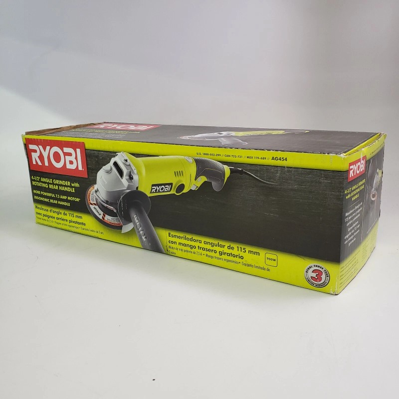 Ryobi AG454 7.5 Amp 120V AC 11,000 RPM Corded Angle Grinder w/ Rear Rotating Handle