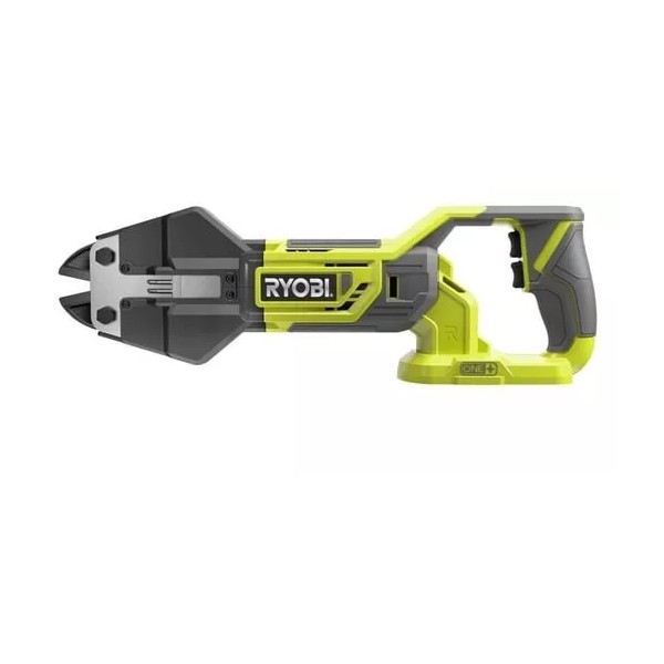 RYOBI 18V Cordless Bolt Cutter. Hot forged steel jaws open to accommodate materials like chains, locks, bolts, fencing and wire shelving up to 3/8 in. in diameter, performing up to 200 cuts per charge using a RYOBI High Capacity LITHIUM+ battery. The innovative design minimizes hand and arm fatigue typically experienced with manual bolt cutters, and the clear sight line in the design allows for optimal visibility of the cut area. Additionally, this tool features separate forward and reverse buttons for precision cutting control and makes repetitive cuts easy.
