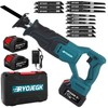 RYOJEGK Brushless Reciprocating Saw,21V Cordless Saws with 2×4.0Ah Battery,Variable Speed Power saw zaw 3500SPM 28mm with 12 Saw Blades,Recíproca Tool-Free Blade Change for Cutting Wood,Metal & PVC