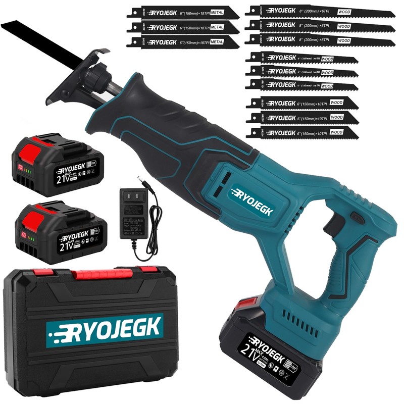 - High-Power Brushless Motor - RYOJEGK power reciprocating saw is equipped with an upgraded brushless motor. Compared with traditional motors,the upgraded brushless motor can provide higher power and is quieter,greatly improving the comfort of product use. The high-power design and upgraded chip technology enable the reciprocating saw to ensure consistent performance when cutting different tasks such as wood,metal or PVC. Say goodbye to motor burnout and enjoy a smoother and quieter operation