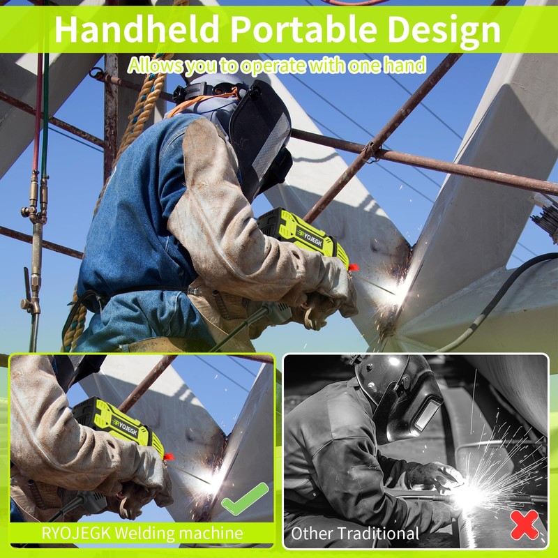 - 20-200A Adjustable Current - The RYOJEGK handheld welder machine 110v offers an adjustable range of 20-200A,controlled via a knob,to enhance the suitability of the device so that it can be adapted to welding a variety of materials from thin metal plates to thick metal plates. The precise control of the current ensures that welders get the best results in different welding tasks. Very suitable for home DIY,professional welding and general maintenance work
