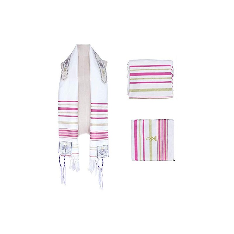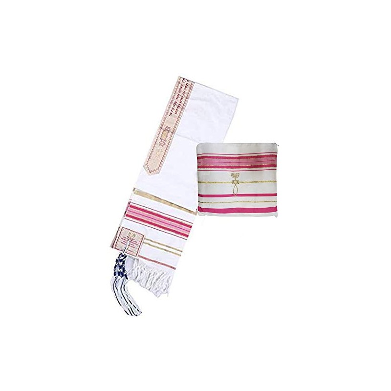 Ryoma New Convenant Messianic Tallit 72"x22" Prayer Shawl with Matching bag, Pink, 72"x22"
