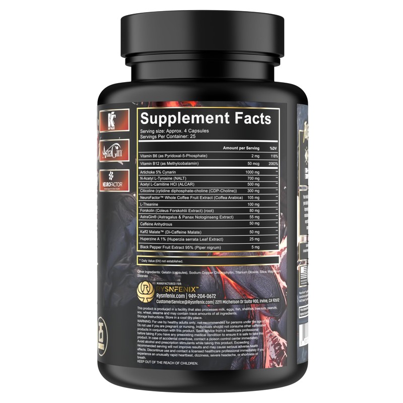 RysnFenix RysnFenix Fenix Focus Advanced Nootropic Brain Health, Memory, Focus Supplement - Fast & Slow Caffeine + Theanine & B12 - Less Brain-Fog - Brain Boost - Artichoke, Tyrosine, Choline - 100 Capsules