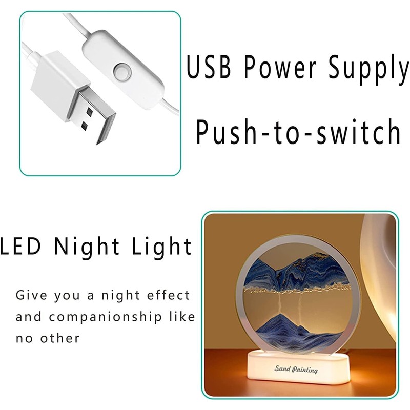 - 🎁【PRODUCT FETURES】:Relaxing 3D Color Sand Art. At night, you turn off all the lights and turn on the sand art switch, looking at the falling sand and the changing different land-scape scenes, you will feel particularly calm and relaxed!
