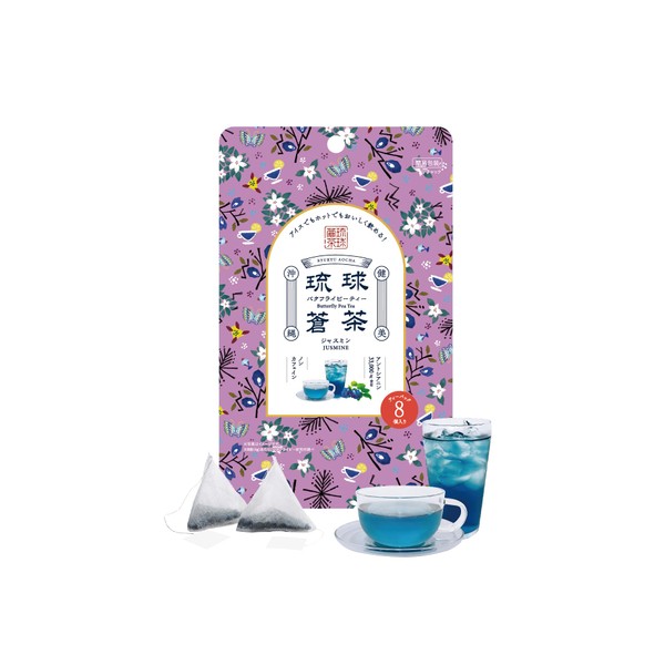 Ryukyu Blue Tea Butterfly Pea Tea Bags Made in Okinawa Prefecture, 8 Packs (Jasmine)