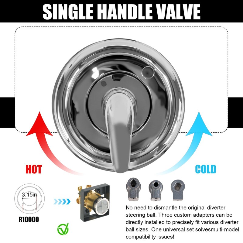 - Universal Compatibility with R10000 Series Includes 3 adapter fittings and a universal adapter kit, designed to work seamlessly with Delta R10000 series valves (valve sold separately). Fits different diverter ball sizes for hassle - free integration with most existing setups.
