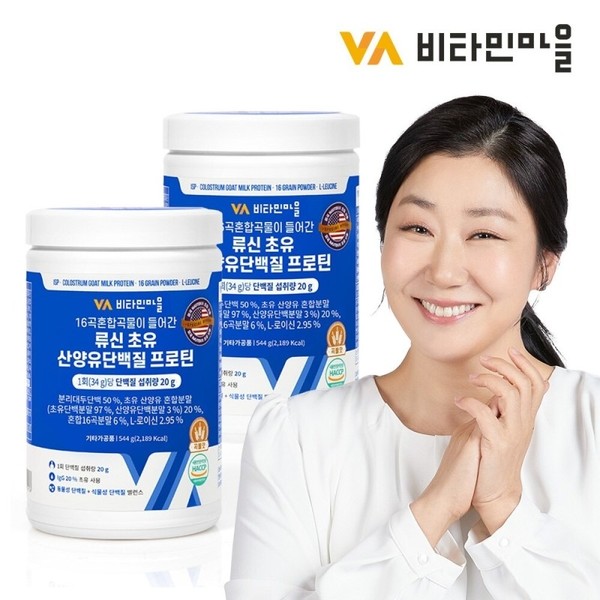 비타민마을 16곡 혼합곡물이 들어간 류신 초유 산양유단백질 프로틴 544g X 2통