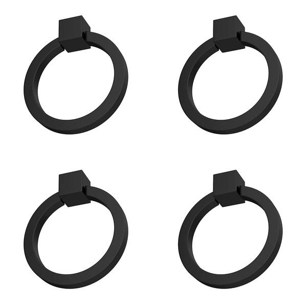RZDEAL 4Pcs 2.0" x 1-7/8" Solid Brass Pulls for Dresser Drawer Ring Pulls Furniture Hardware Black Kitchen Cabinet Pulls