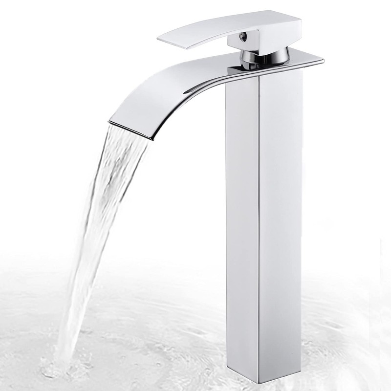 Rzoeox Tall Bathroom Vessel Faucet, Waterfall Design, Chrome Finish, Single Handle, 1 Hole, Drip-free Ceramic Filter Element