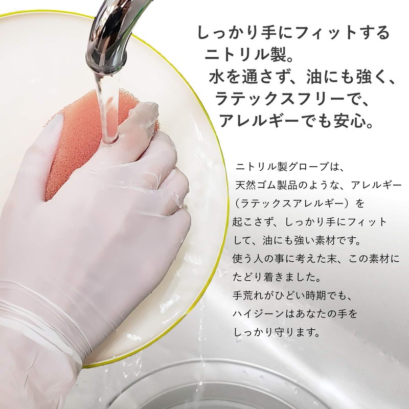 - 飲食業界で活躍のホワイトが新登場。もちろん粉無し・ラテックスフリーのニトリルゴム製