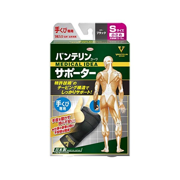 バンテリンコーワサポーター 手くび専用 小さめ/Sサイズ(手首周囲 13~15cm) ブラック