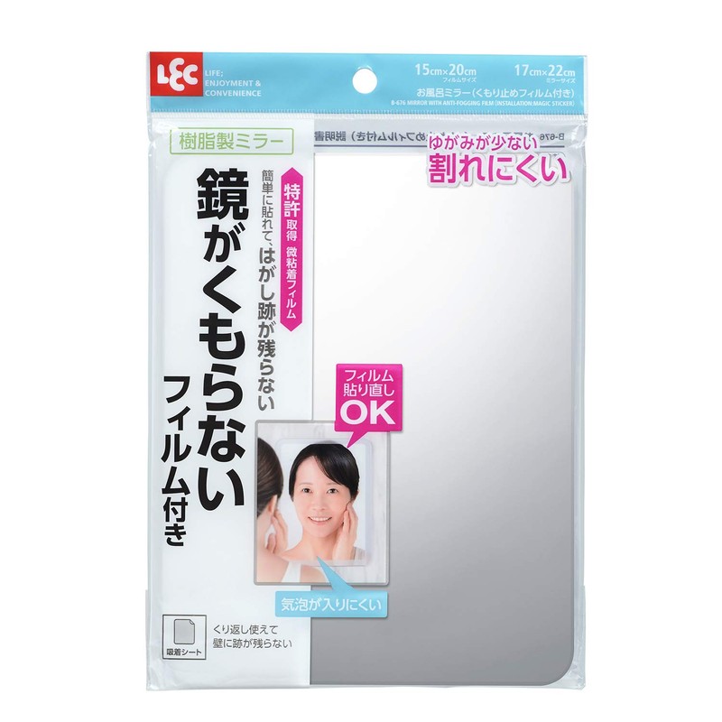 レック お風呂ミラー くもり止め フィルム付き ( 曇り止め 鏡 ) ホワイト S (17×22cm) B-676