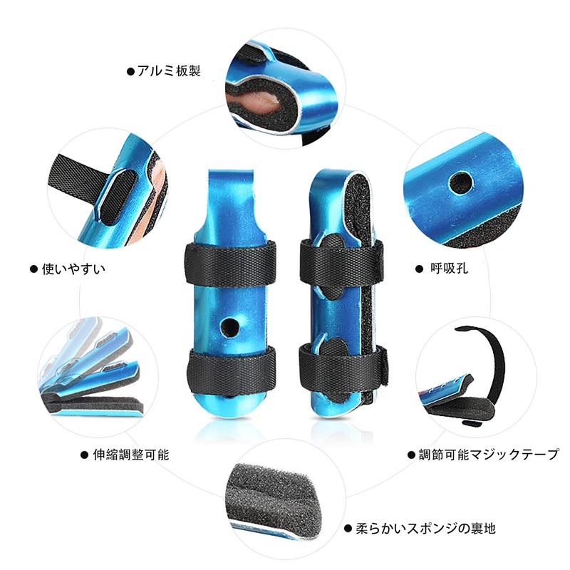 - 2枚式の指ははさみ、指の骨折、じん帯の損傷などの傷の后に固定するのに適します