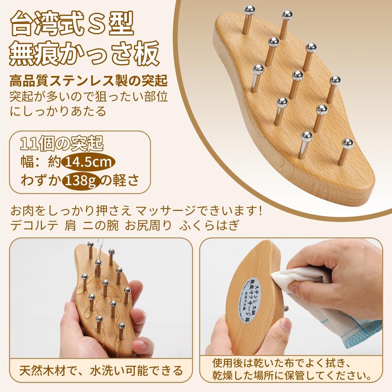 無痕かっさ板 マッサージ 木製 かっさ プレート 台湾工藝 無痕マッサージ ボディ 健康 美肌 舒筋活絡 S型 血行促進 疲労回復