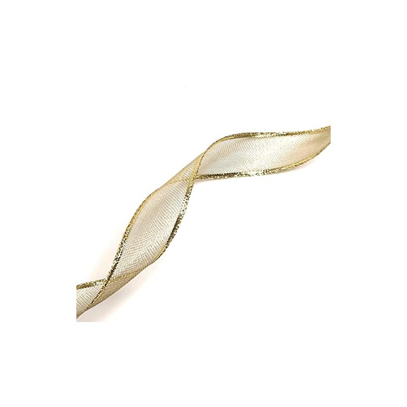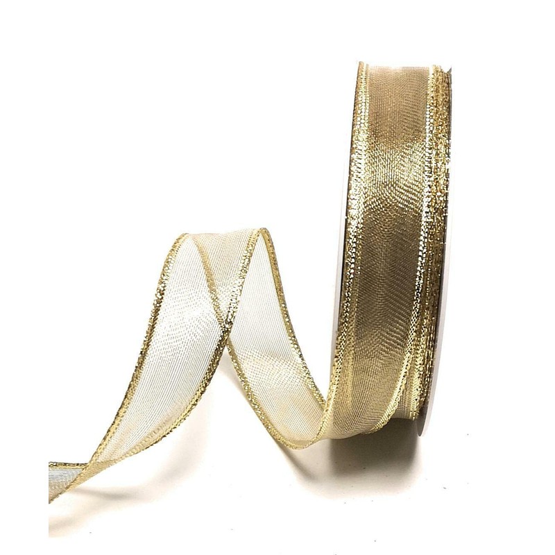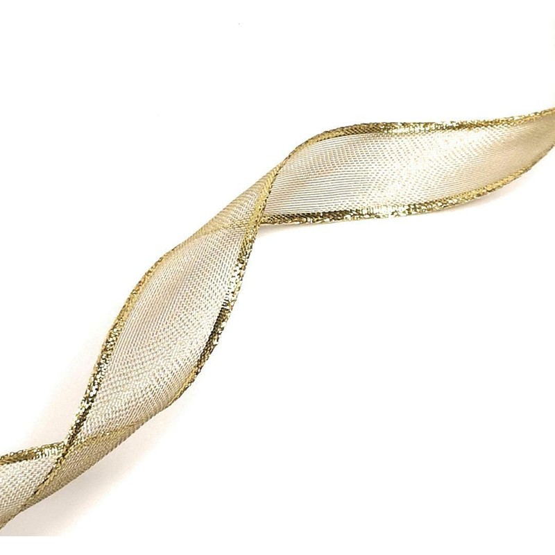 - Ribbon 25 m x 25 mm Decorative Ribbon Gold Ribbon with Wire Lurex Grid