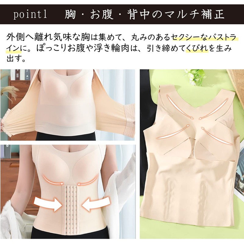 - Functional Shape: Normal-wide shoulder reduces the burden on your shoulders while suppressing the shoulder and opening your chest. In addition, the cross back construction stretches your back muscles and reduces the hunchback. Supports back muscles without hindering shoulder blades movement It reduces the amount of shoulder wrap and allows you to open your chest posture. In addition, the cross back construction stretches your back muscles and reduces the hunchback. Supports back muscles without hindering shoulder blades movement The bust is pulled from the bottom to collect the meat and side meat without missing. The U-neck design makes it hard to see even if you open your decollete. Four row hook and eye integrated waist cincher compresses loose tummy fat