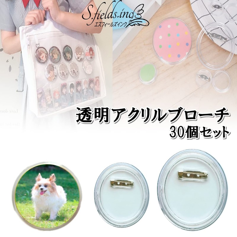 S.fields.inc Acrylic Brooch 30pcs Transparent Badge Can Badge Photo Badge Pin Badge Handmade DIY Photo, Acrylic, Durable Kit, Commercial Use, Anime Goods, Clear Bag, Heart, Transparent Bag, 1.5 inches (37 mm)