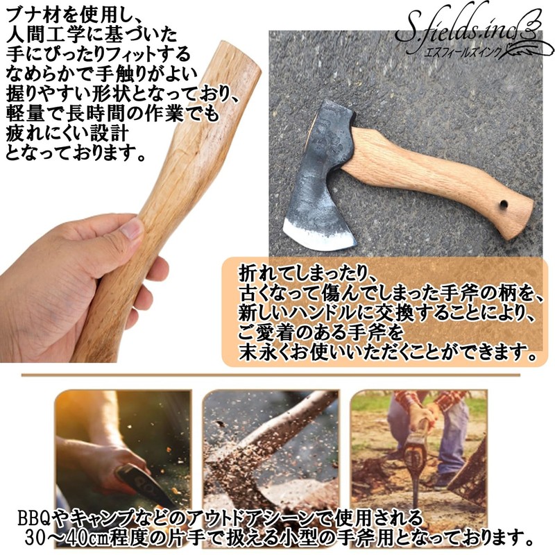 S.fields.inc Axe Handle, Replacement Wood Splitting Axe, Wedge, Hardware Included, Ono Handle, Wooden, Camping Equipment (14.6 inches (37 cm)
