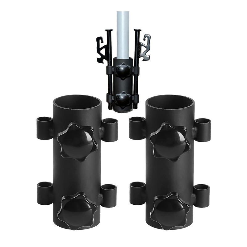 - Two adjustment screws on the body allow you to adjust the gap Can be attached to various size poles